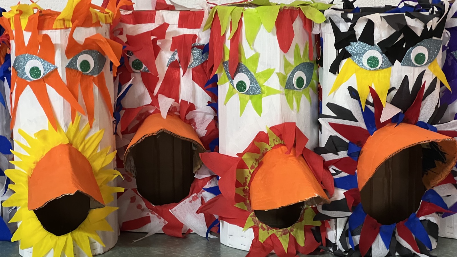 Patrizia i personaggi della fiaba di Pinocchio costruiti con i bambini di una scuola dell’infanzia